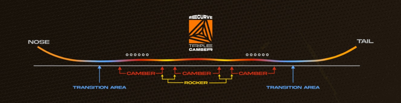 ロッカーベースの「HYBRID TRIPLE CAMBER」=ロッカーボードの中に3つ小さなキャンバーがある